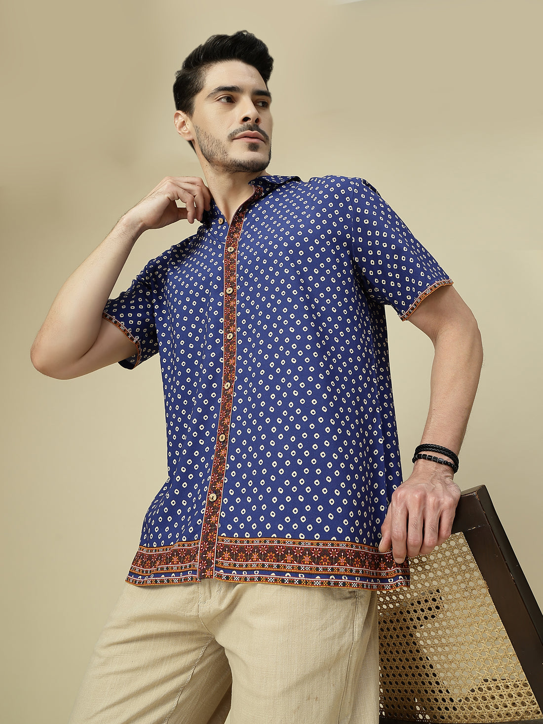 Royal Blue Ethnic Fusion Panel Printed Shirt