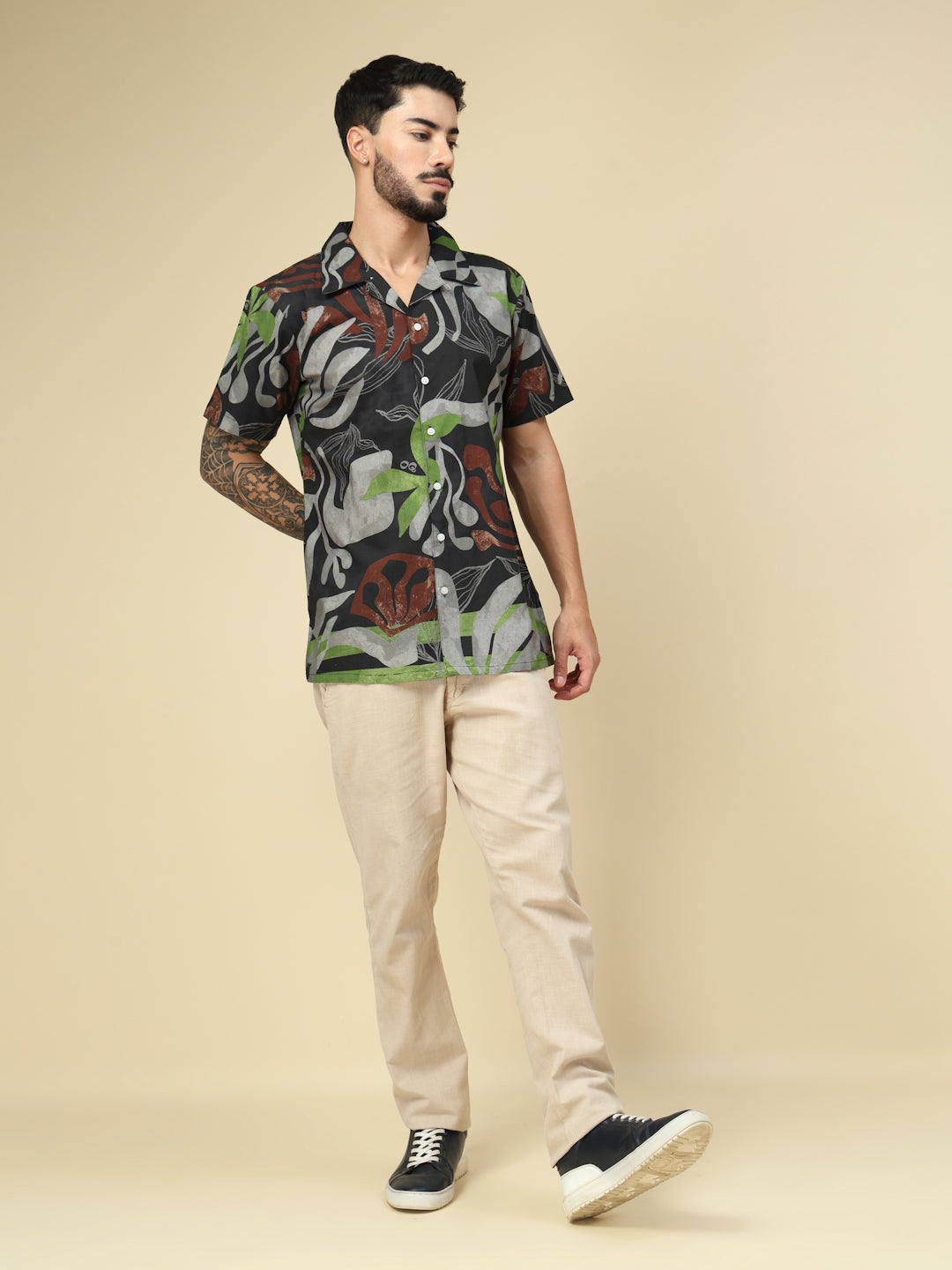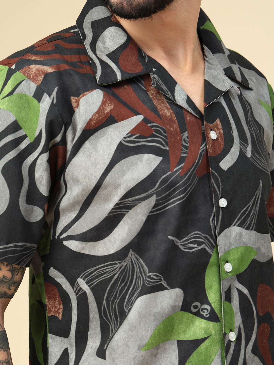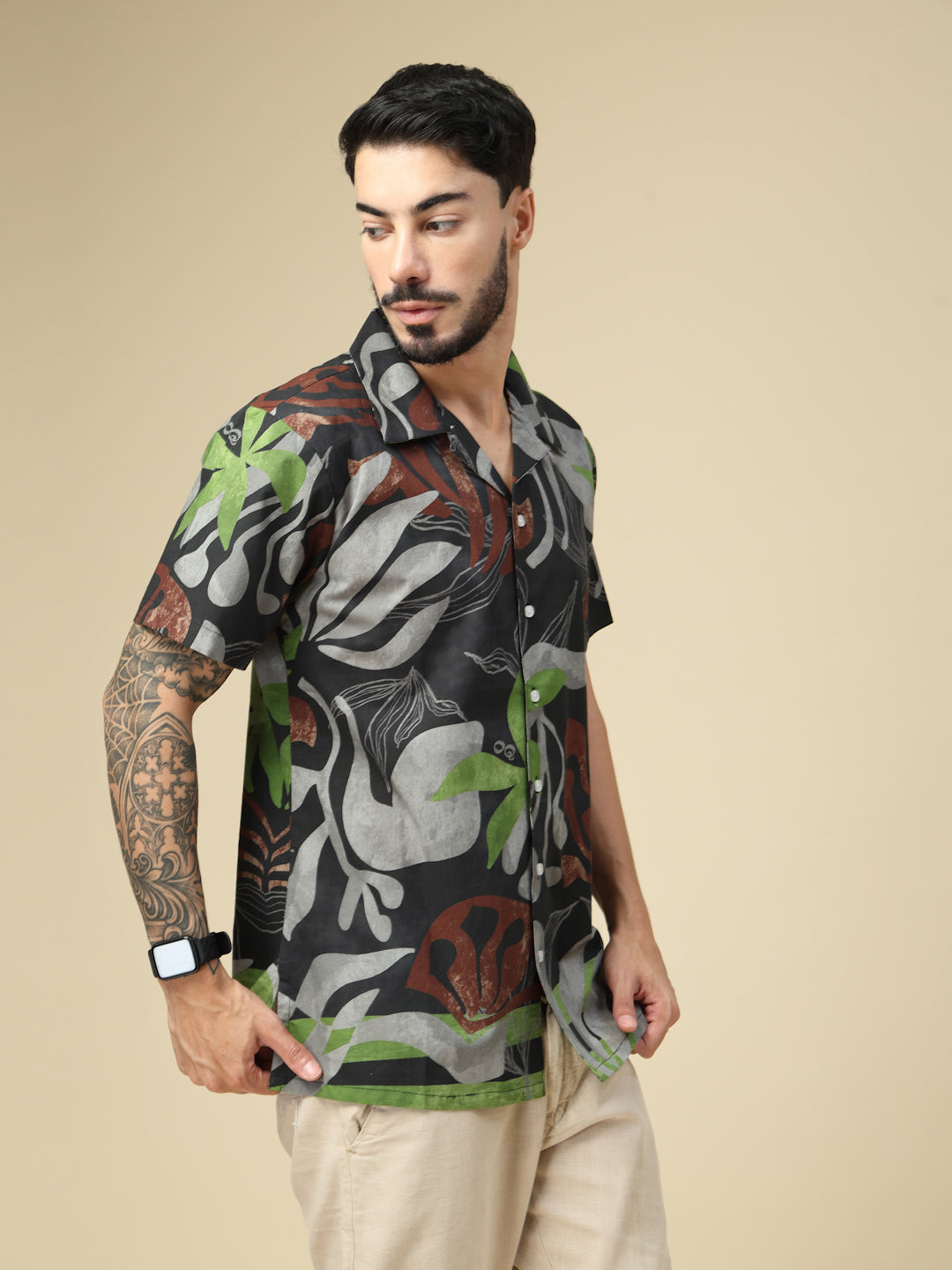 Black Botanical Breeze Casual Printed Shirt
