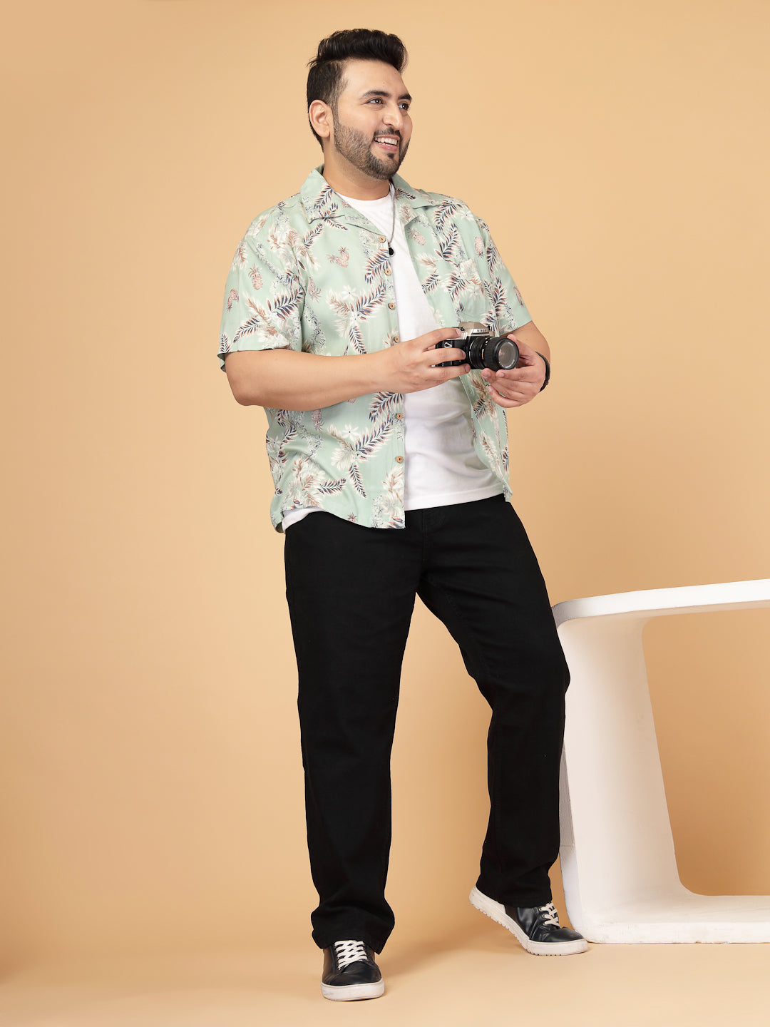 Mint Green Tropical Leaf Print Rayon Twill Shirt